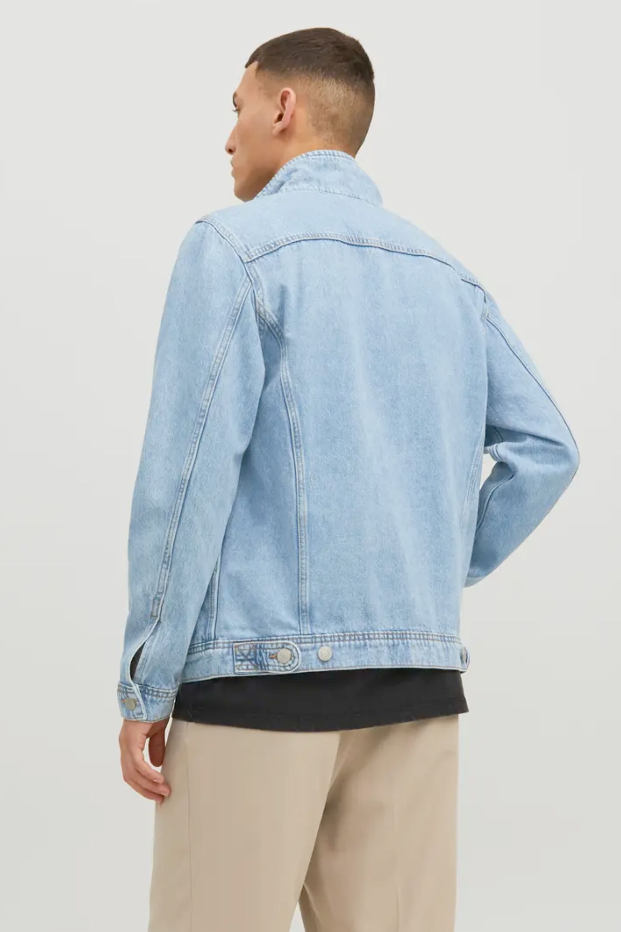 Giacca di jeans chiara da uomo del marchio JACK&JONES. Modello casual e facilmente abbinabile per l'uso quotidiano! Tessuto twill intrecciato resistente, collo classico, maniche lunghe con polsini abbottonati e tasche al petto e anteriori. Il modello classico e la lavatura chiara donano alla giacca un aspetto denim fresco e leggermente consumato. Materiale 90 % cotone e 10 % cotone riciclato.