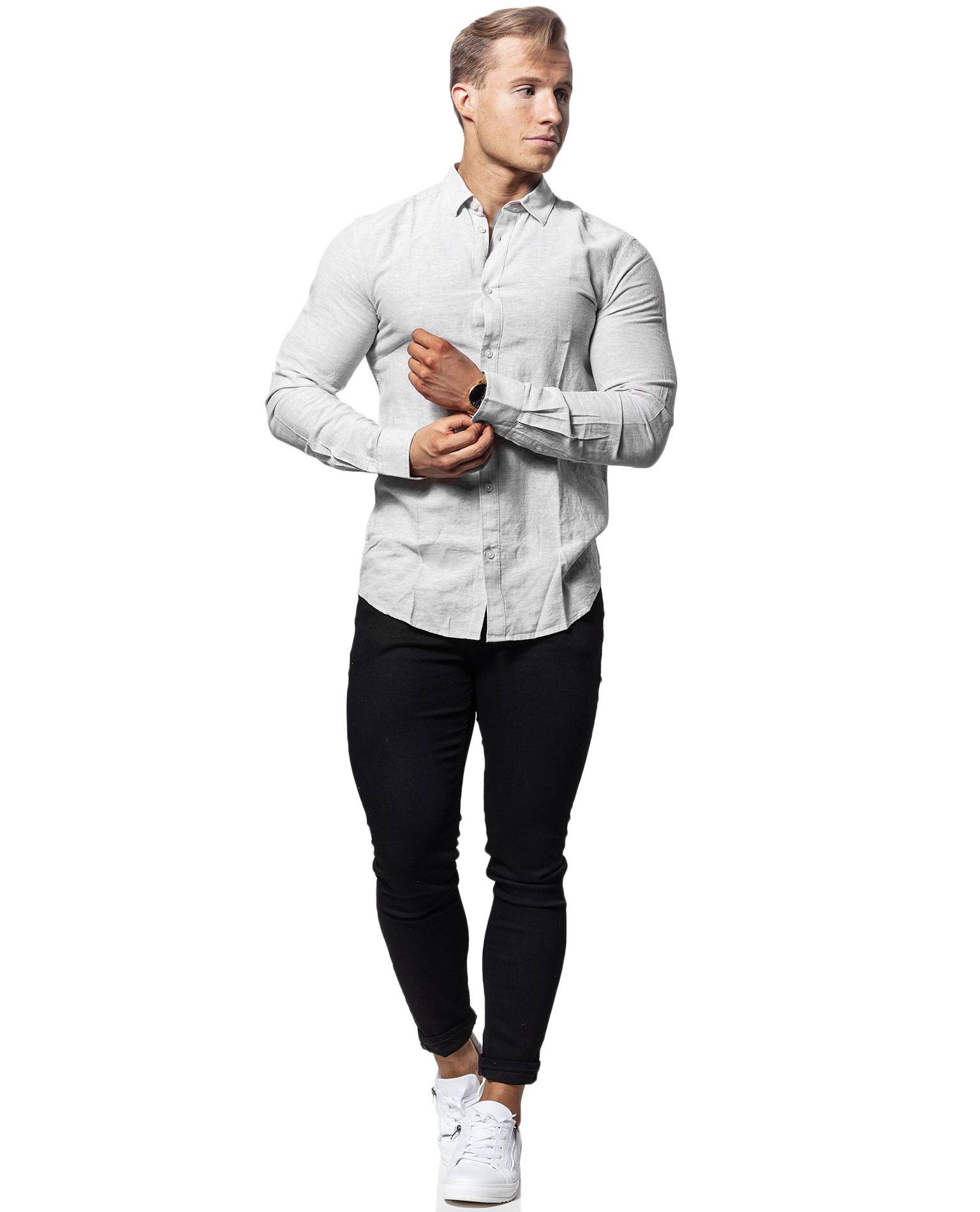 Camicia Caiden in lino Chincilla Only & Sons