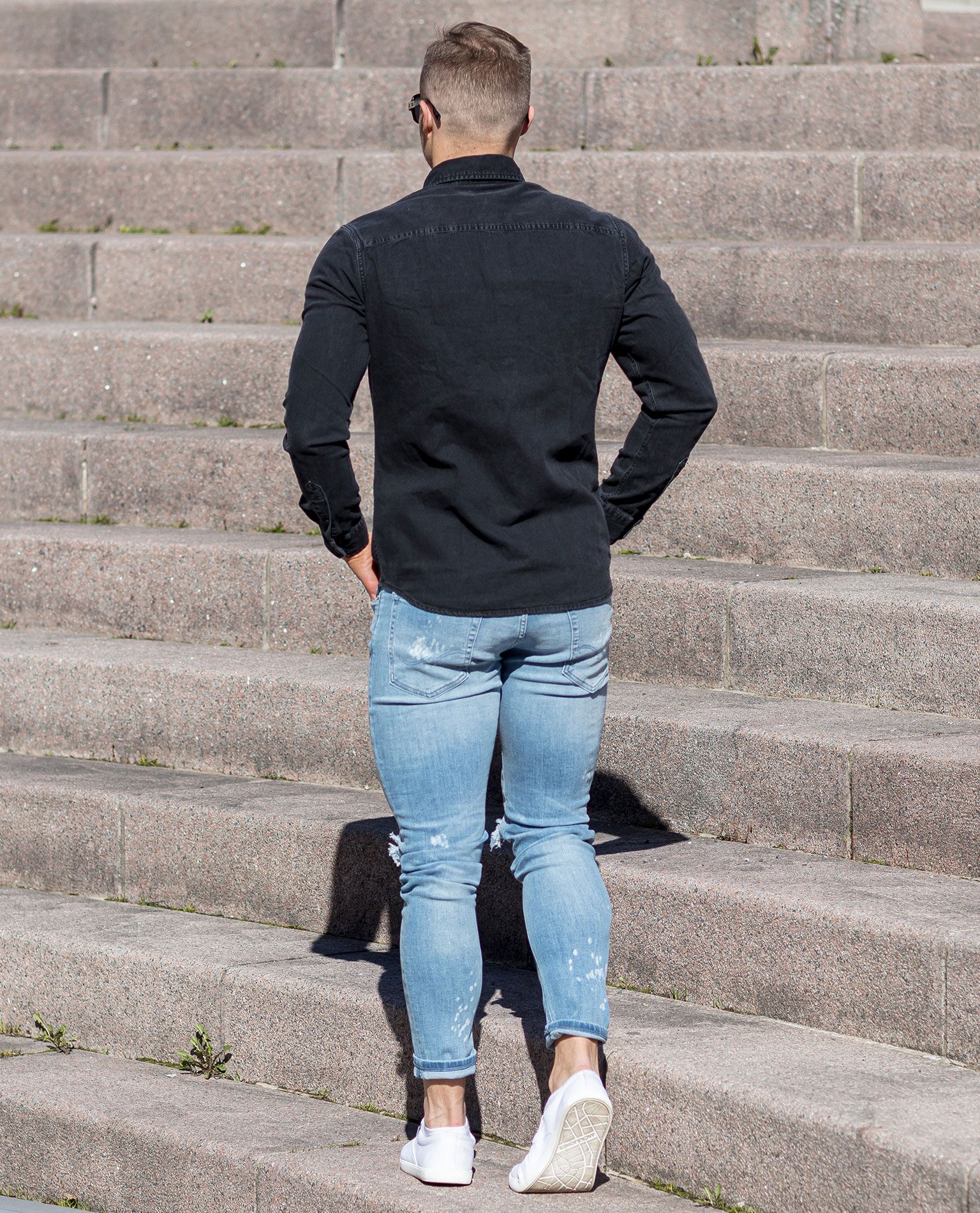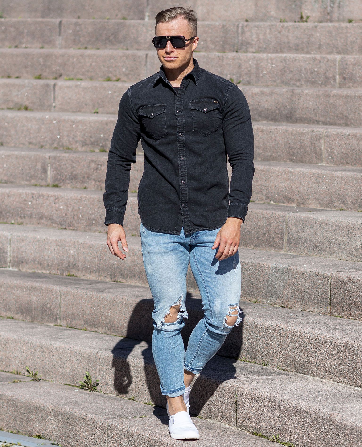 - Percorso del prodotto Prima pagina Maniche lunghe da uomo Camicia di jeans Sheridan Black Jack & Jones