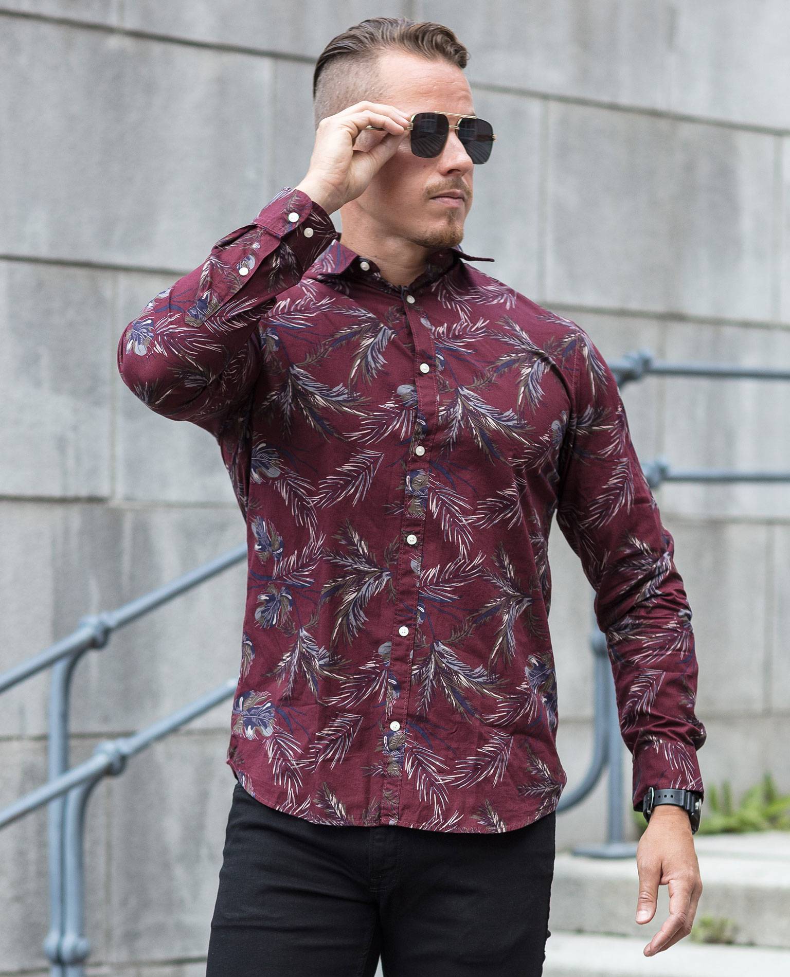 Camicia JACK & JONES in cotone con colletto. È molto adatto per la vita di tutti i giorni, il lavoro o, ad esempio, un appuntamento. Stampa allover trendy dai toni autunnali. Chiusura classica con bottoni.