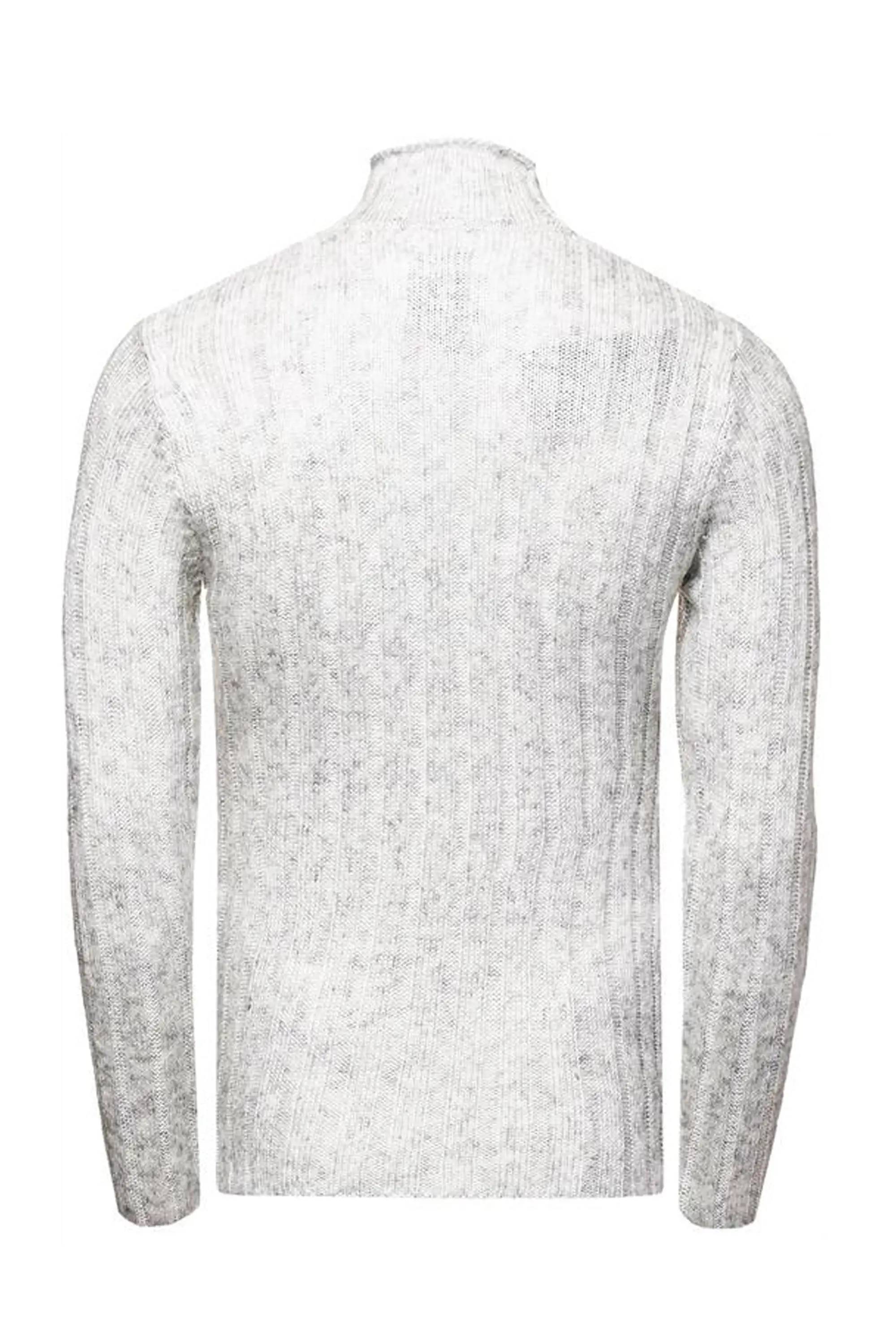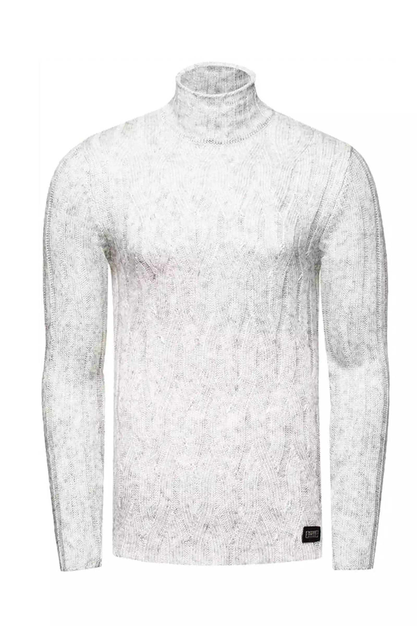 Maglione grigio chiaro da uomo della marca RUSTY NEAL. Colletto alla coreana, motivo trendy sulla superficie e logo sull'orlo.