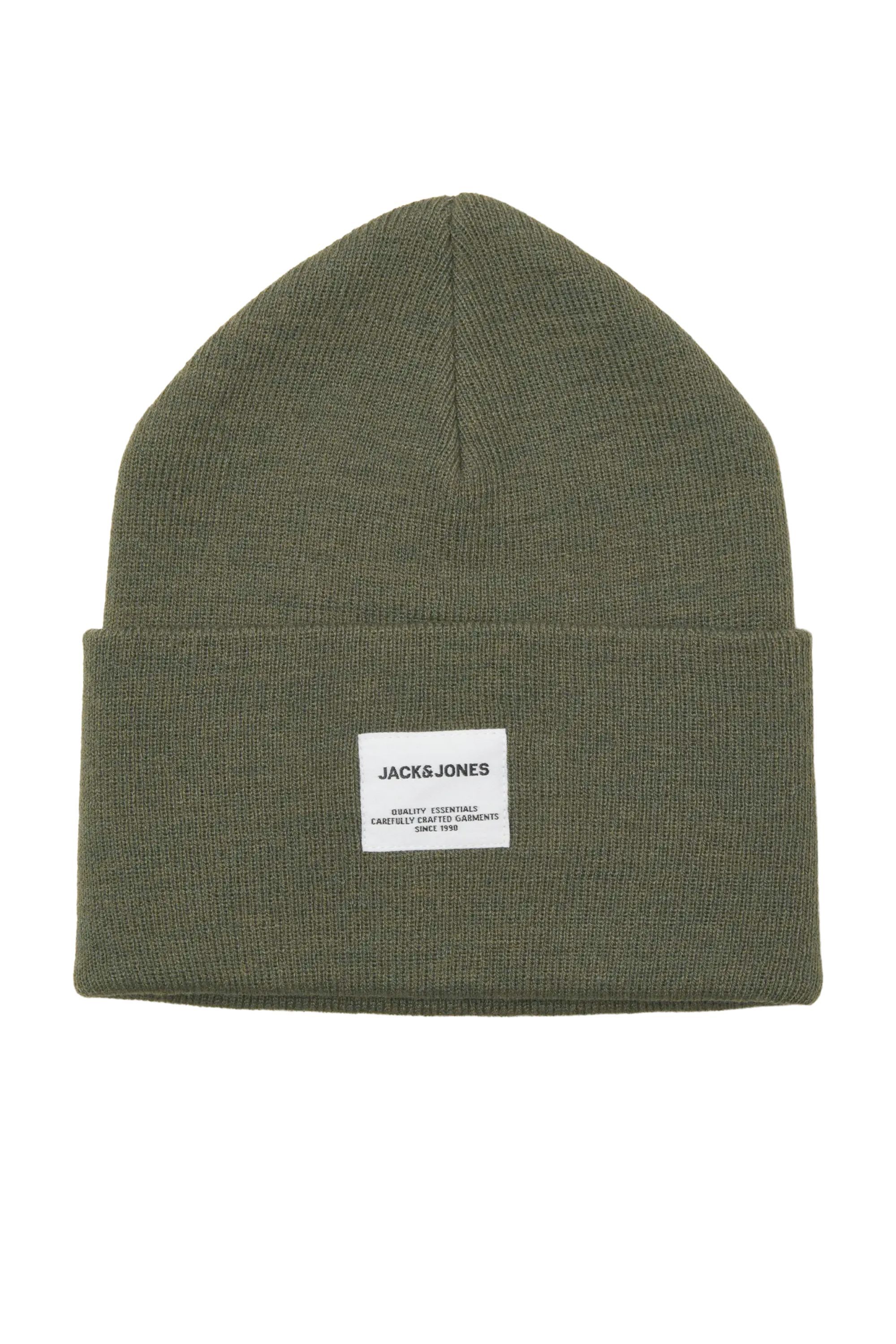 JACK & JONES berretto verde scuro. Bordo risvoltato con logo.