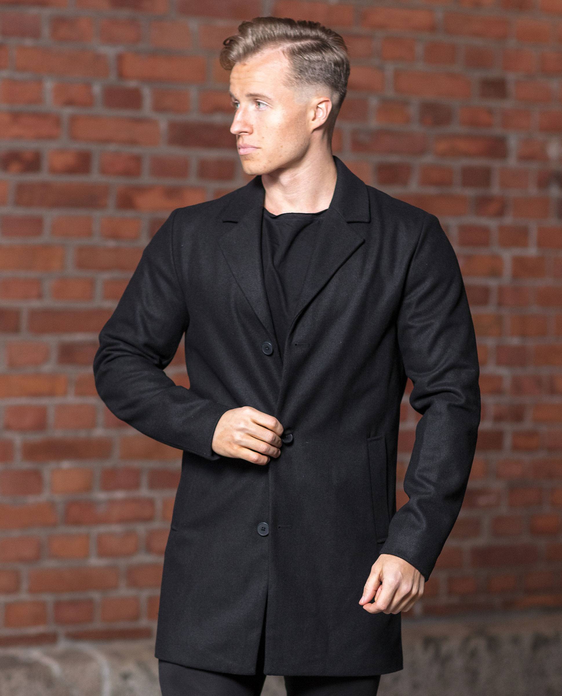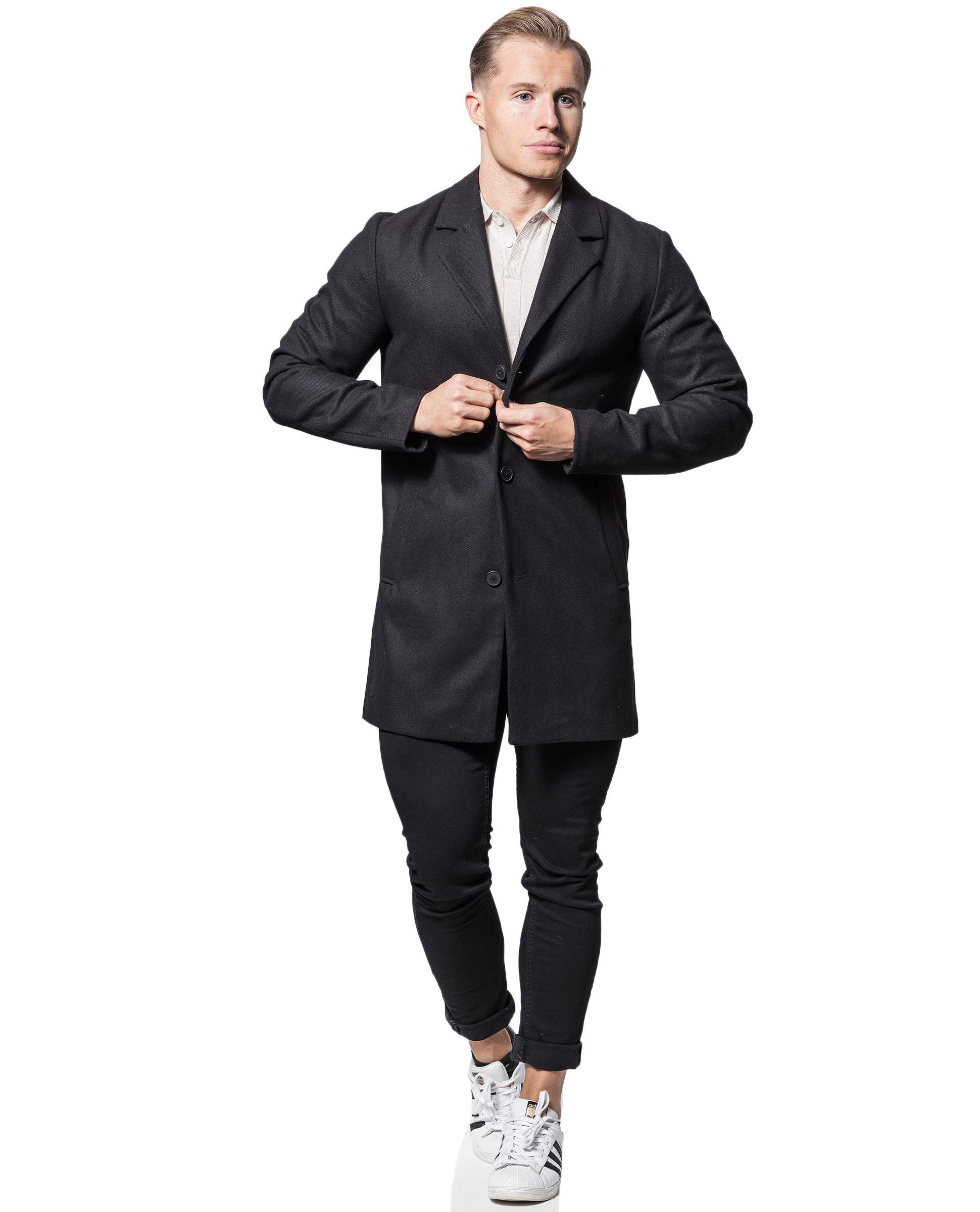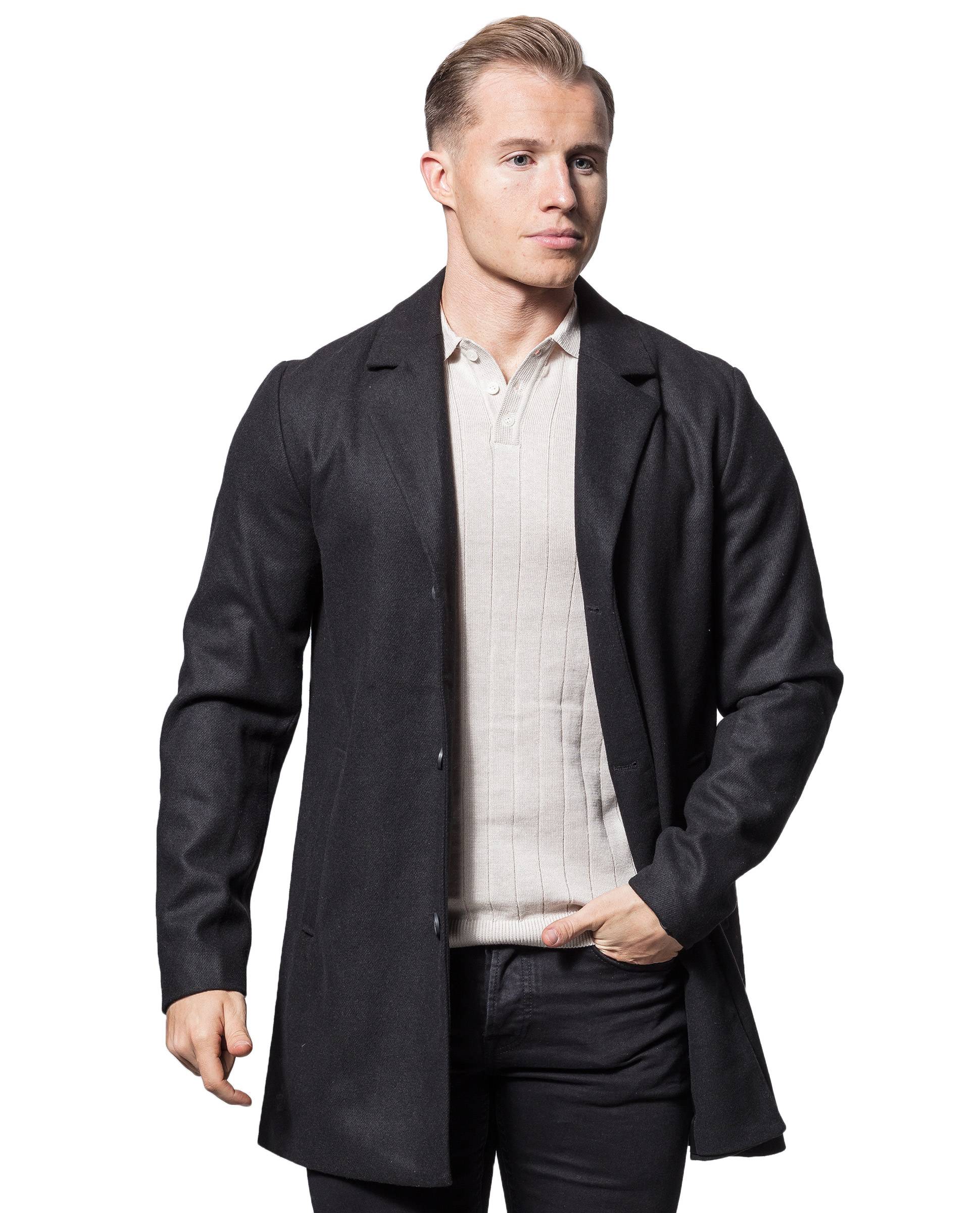JACK & JONES giacca in lana nera. Un modello classico con bottoni neri sul davanti, due tasche frontali e colletto classico. Tasca interna. Tessuto leggermente più sottile, quindi è ottimo per l'autunno o la primavera. Scala di calore 2,5/5.