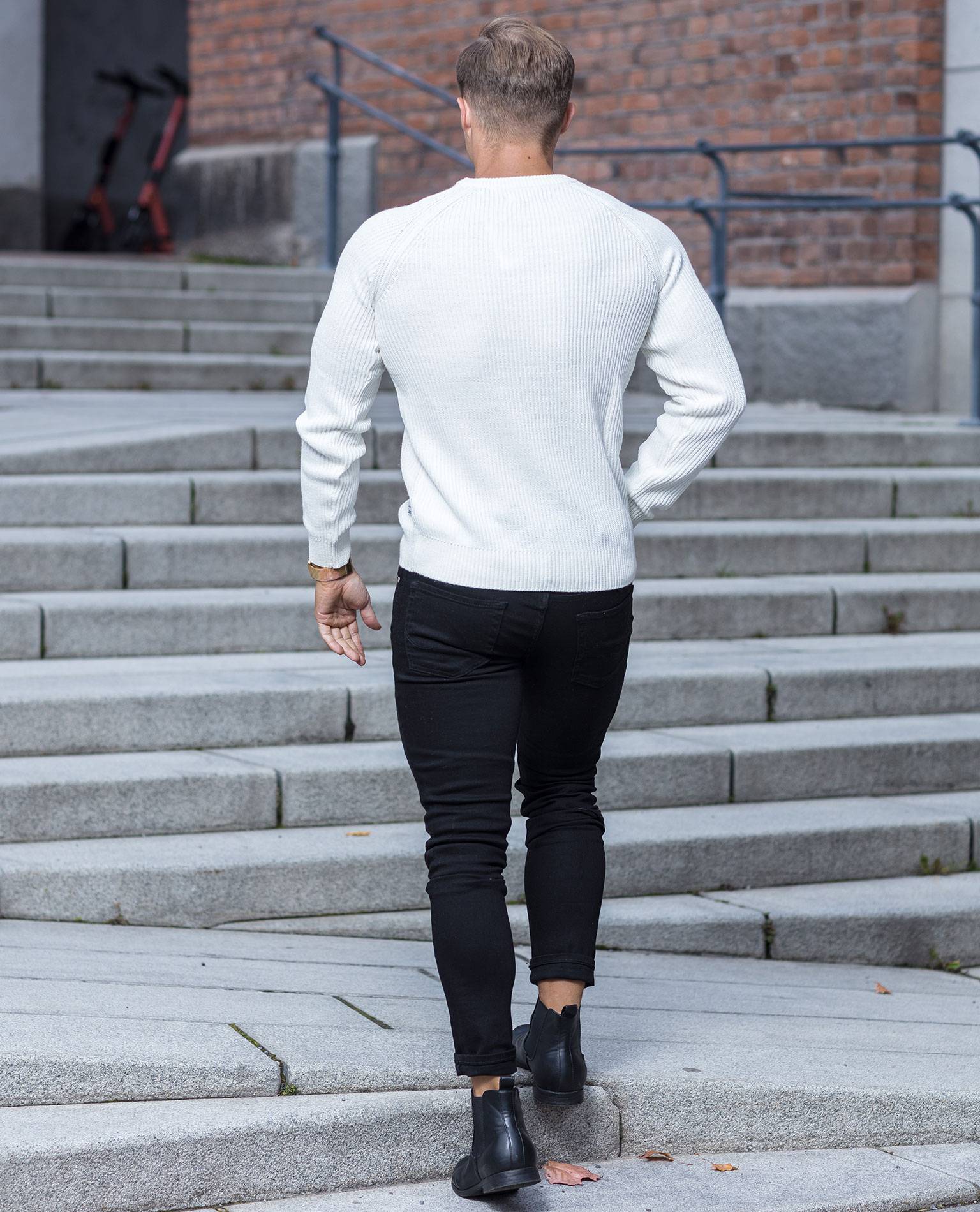 JACK & JONES maglione bianco. Materiale leggero, logo sull'orlo. Ottimo per l'autunno e l'inverno, un maglione versatile dal colore easy.